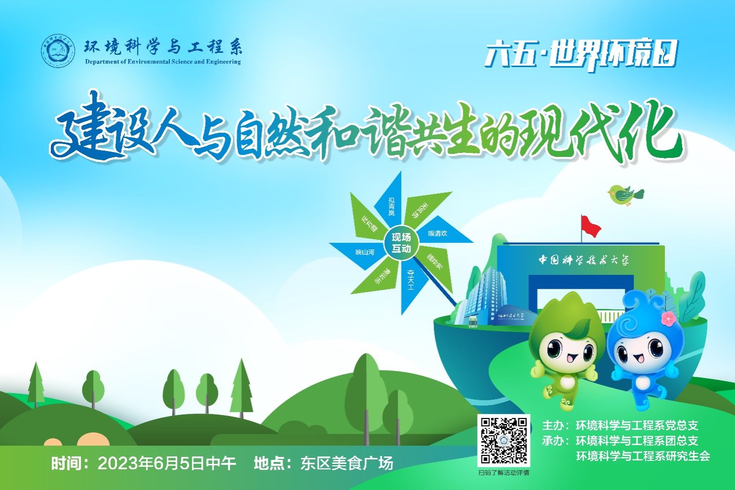 每年的65日为世界环境日,中国2023年六五环境日主题是建设人与自然和谐共生的现代化。为扎实开展学习贯彻习近平新时代中国特色社会主义思想主题教育,深入学习贯彻党的二十大精神和习近平总书记关于生态文明建设的重要论述精神,推动“绿水青山就是金山银山”的生态理念深入人心,动员广大师生积极投身建设美丽中国,实现人与自然和谐共生的现代化的伟大实践。在六五–世界环境日即将来临之际,环境科学与工程系拟开展“建设人与自然和谐共生的现代化——六五–世界环境日”现场活动。